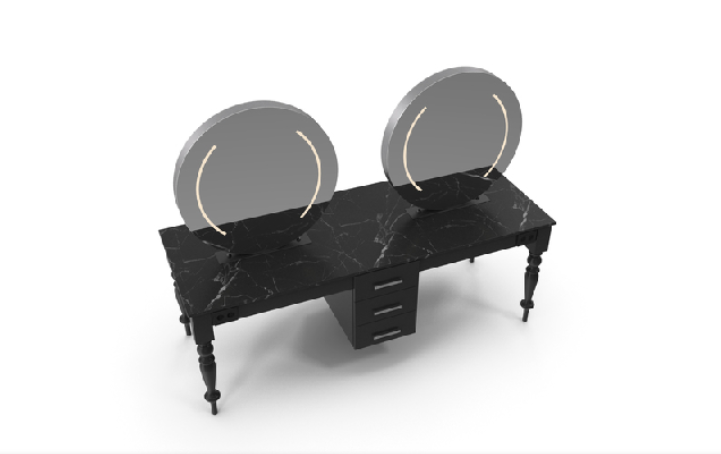 Untuk Anda yang membutuhkan meja di salon, Anda bisa memesan meja ini. Anda bisa meltakkan 2 cermin di atasnya. Bisa pula menjadi meja biasa atau meja kerja.